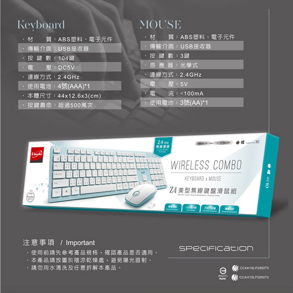 E-books Z4 美型無線鍵盤滑鼠組 無線鍵盤滑鼠組 無線滑鼠 辦公滑鼠 鍵鼠組 桌電 筆電適用 現貨 蝦皮直送