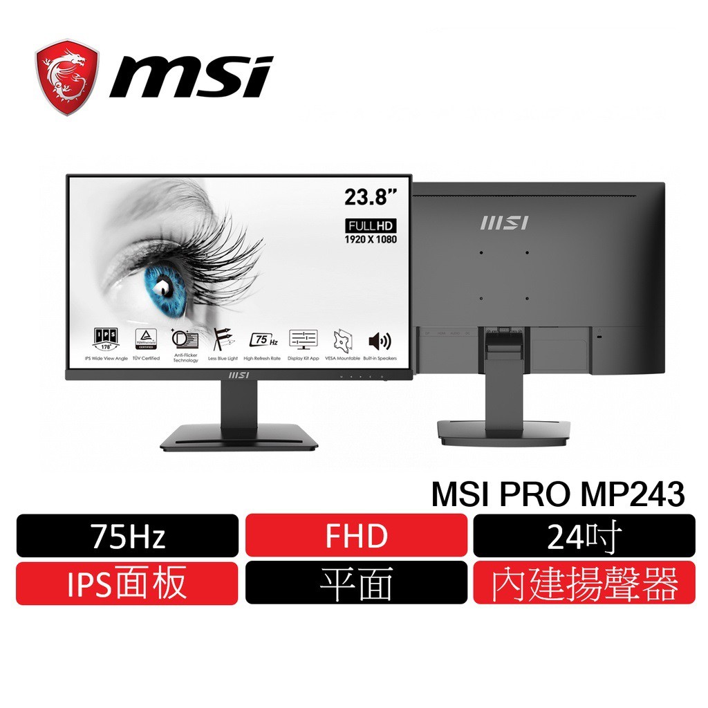 msi 微星 MSI PRO MP243 平面螢幕 24吋 FHD/75Hz/有喇叭/黑色 廠商直送