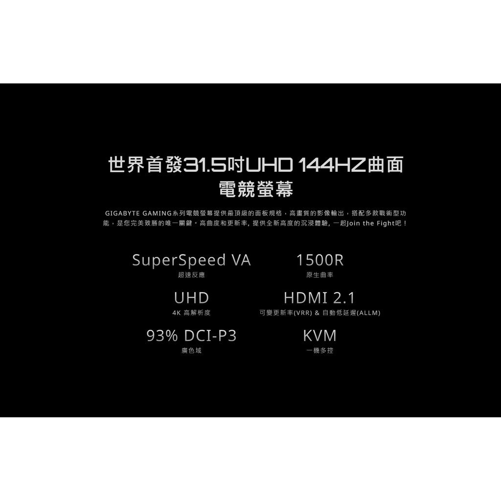 Gigabyte 技嘉 M32UC 32吋 曲面螢幕 電競螢幕 UHD/144Hz/4K/HDR400 現貨 廠商直送