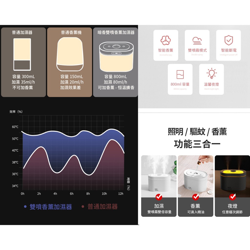 ANTIAN 智能雙噴霧水氧機 家用精油香薰香氛機 空氣清淨機 大容量靜音霧化加濕器 800ML 現貨 蝦皮直送