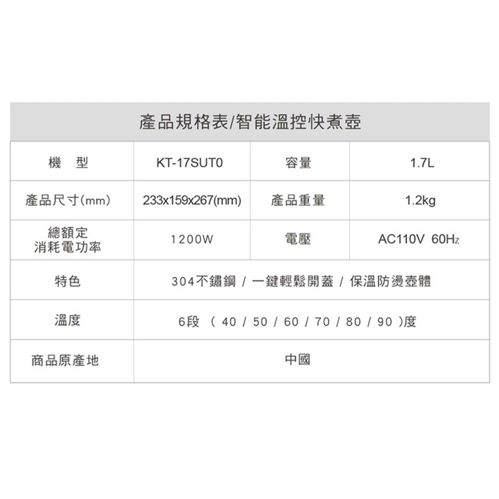 CHIMEI 奇美1.7L 智能溫控防燙快煮壺 KT17SUT0 現貨 廠商直送