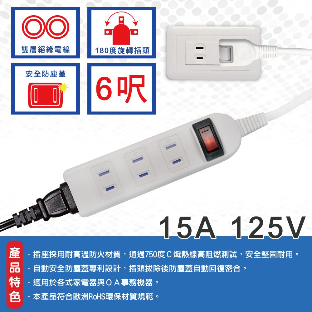 明家Mayka SP-422 2孔1開4插 防塵 延長線(180度 平貼插頭 中繼線 新安規) 現貨 廠商直送