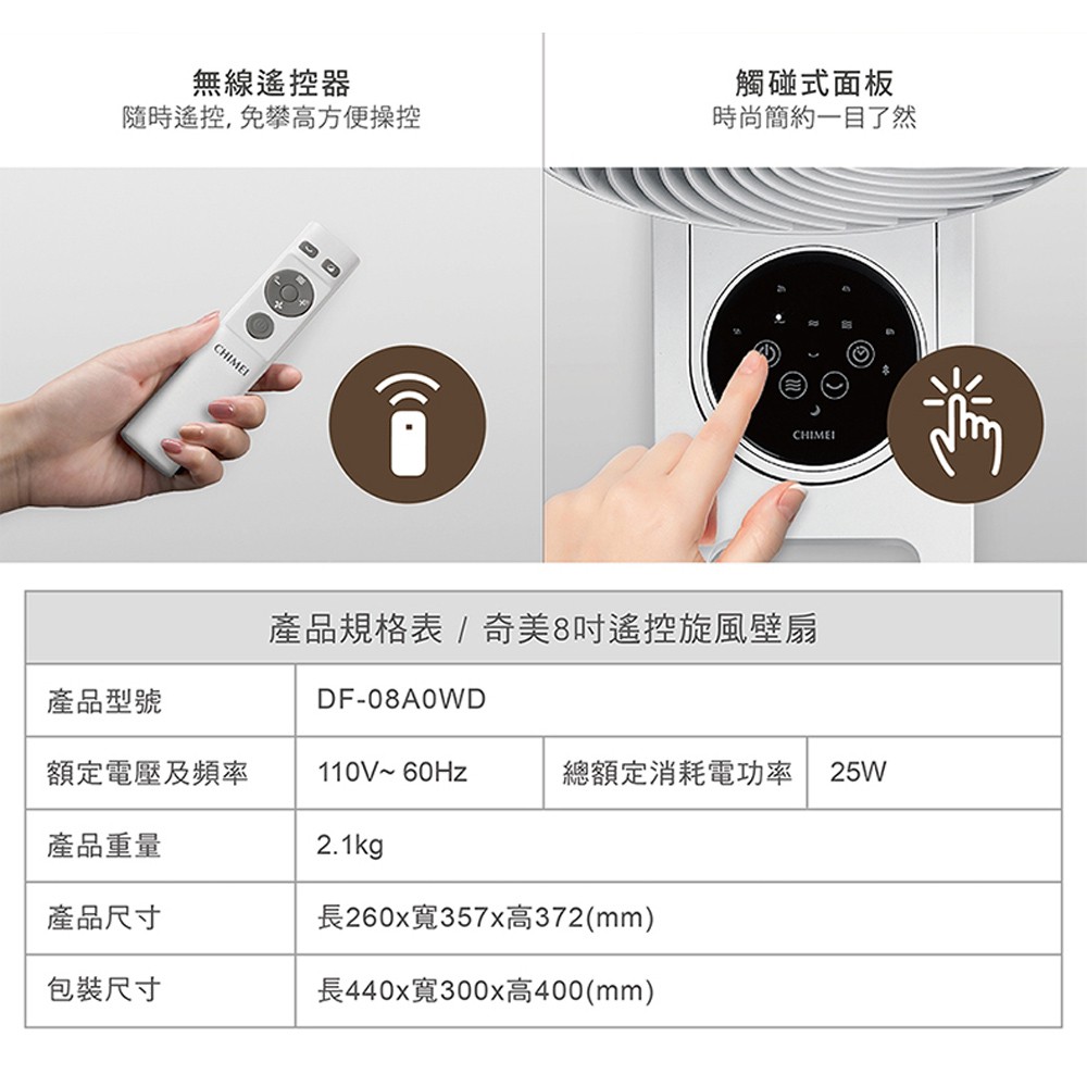 CHIMEI 奇美 8吋 遙控旋風壁扇 DF-08A0WD 現貨 廠商直送