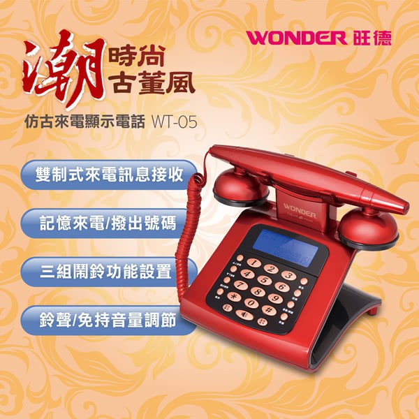 WONDER旺德 仿古來電顯示電話機(WT-05) 現貨 廠商直送
