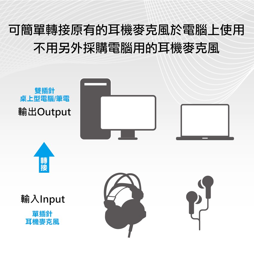 Intopic廣鼎3.5mmAUX音源轉接線1對2一母轉二公Y-CABLE4環轉3環(手機耳麥轉PC用) 現貨 廠商直送