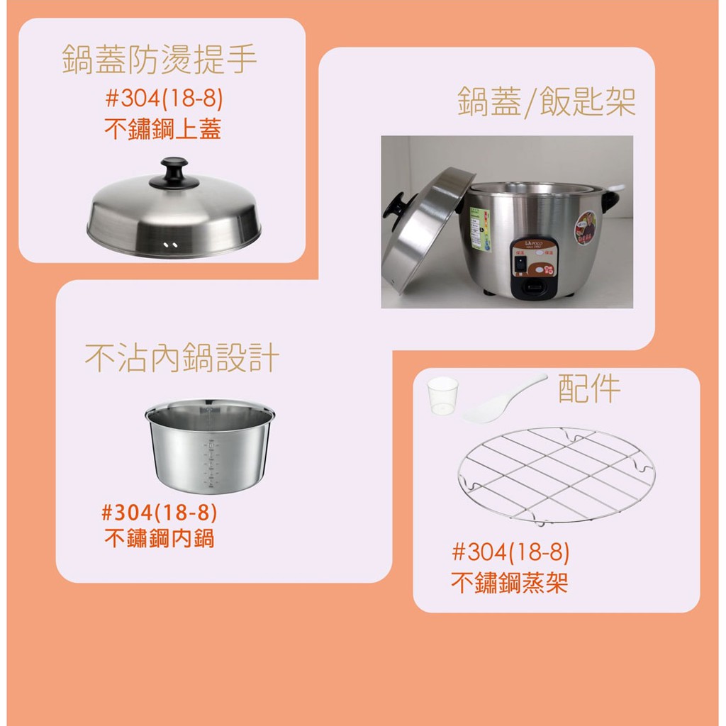 LAPOLO藍普諾 6人份 機械式蒸氣不鏽鋼電鍋 LAN5-2206 現貨 廠商直送