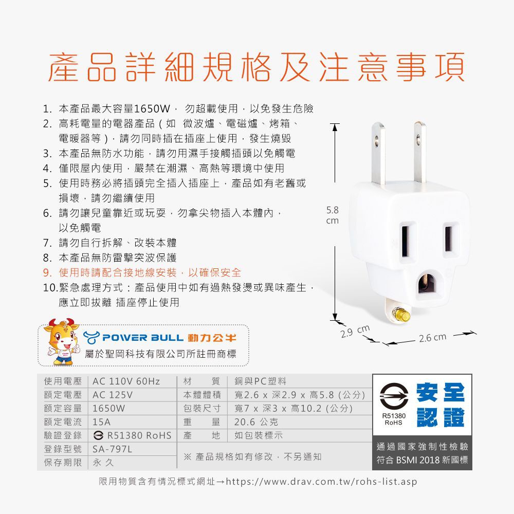聖岡科技Dr.AV TNT-797L 變向L型 3轉2 插頭(防火材質 3P轉2P 新安規) 現貨 廠商直送