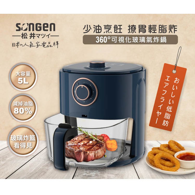 SONGEN松井 日系晶鑽可視玻璃氣炸鍋/烘烤爐(SG-500AF) 現貨 廠商直送