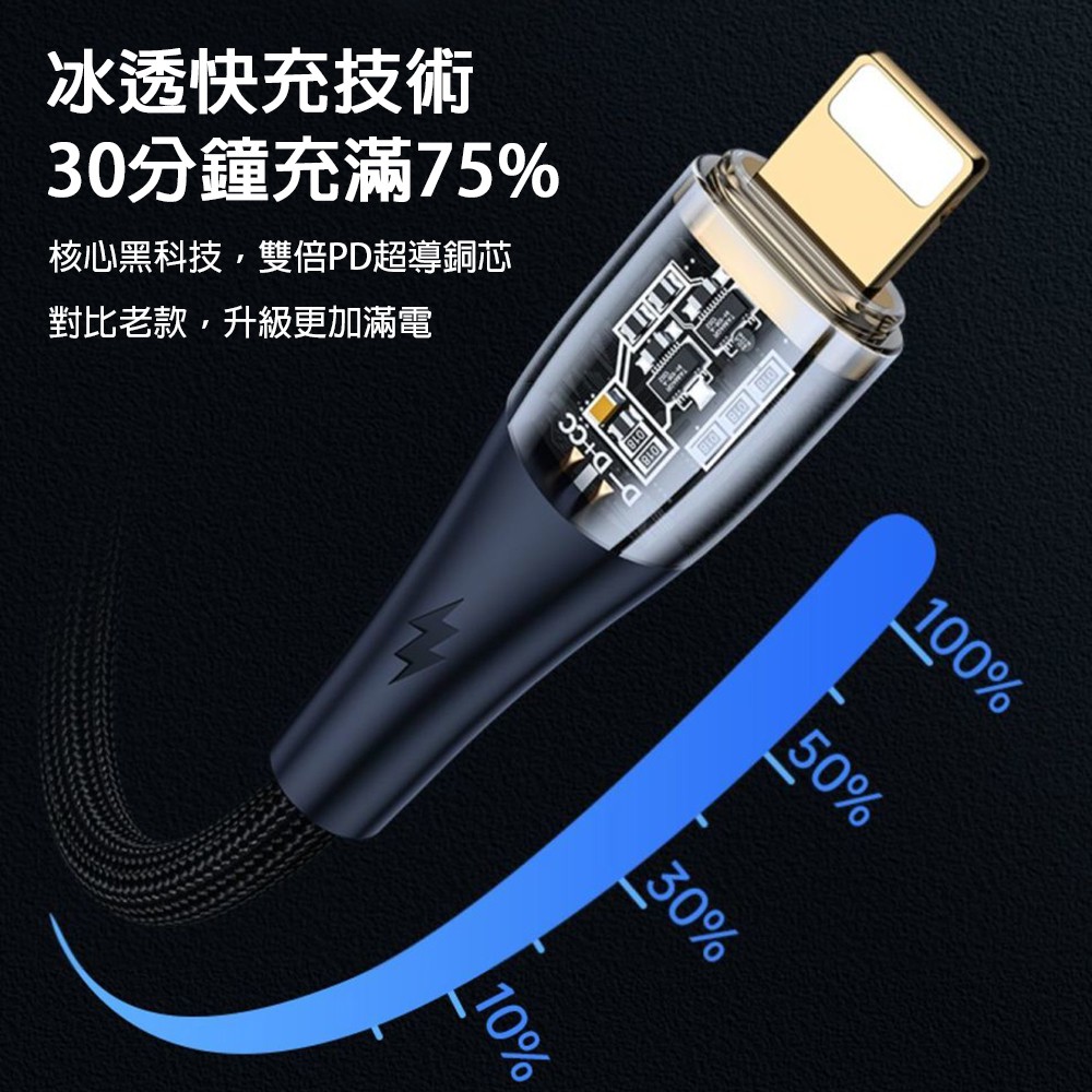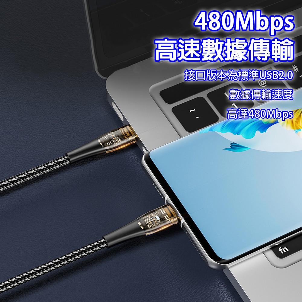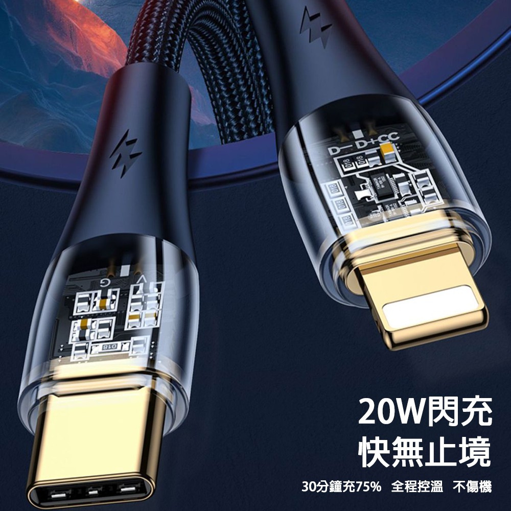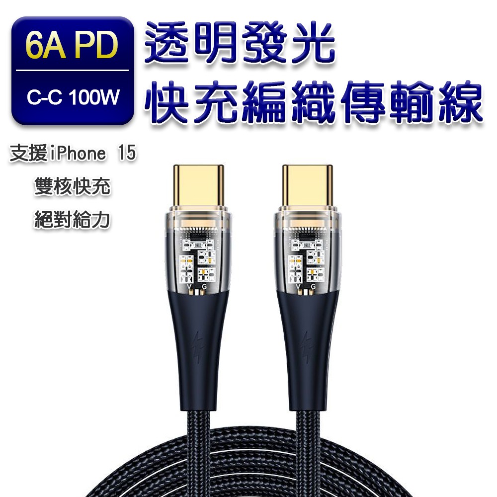 6A PD透明發光快充編織傳輸線(C-L 20W / C-C 100W[支援iPhone 15系列]) 現貨 廠商直送