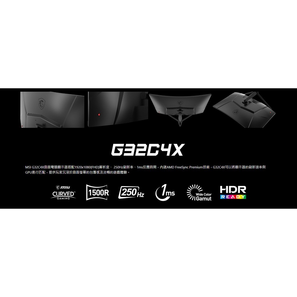 msi 微星 G32C4X 電競螢幕 32型 FHD/250hz/VA/1500R 現貨 廠商直送