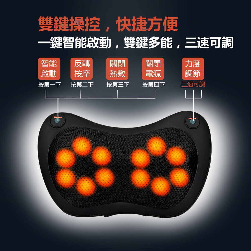全新升級 多功能 12球 按摩枕 三速可調 家用車用 按摩器 肩頸按摩枕 肩頸按摩器 腳底按摩機 熱敷 現貨 蝦皮直送