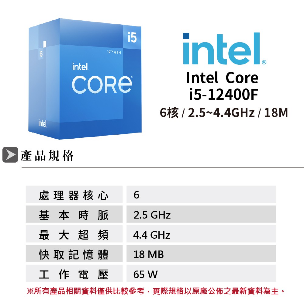 Intel CORE I5-12400F 6核 中央處理器 平輸盒裝 現貨 廠商直送