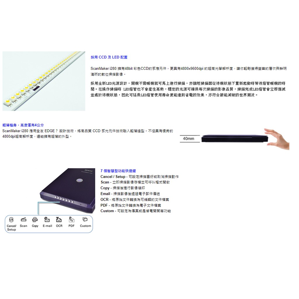 全友 ScanMaker i280 超薄型 彩色掃描器 掃描 複印 轉檔 高解析4800dpi A4可 現貨 廠商直送