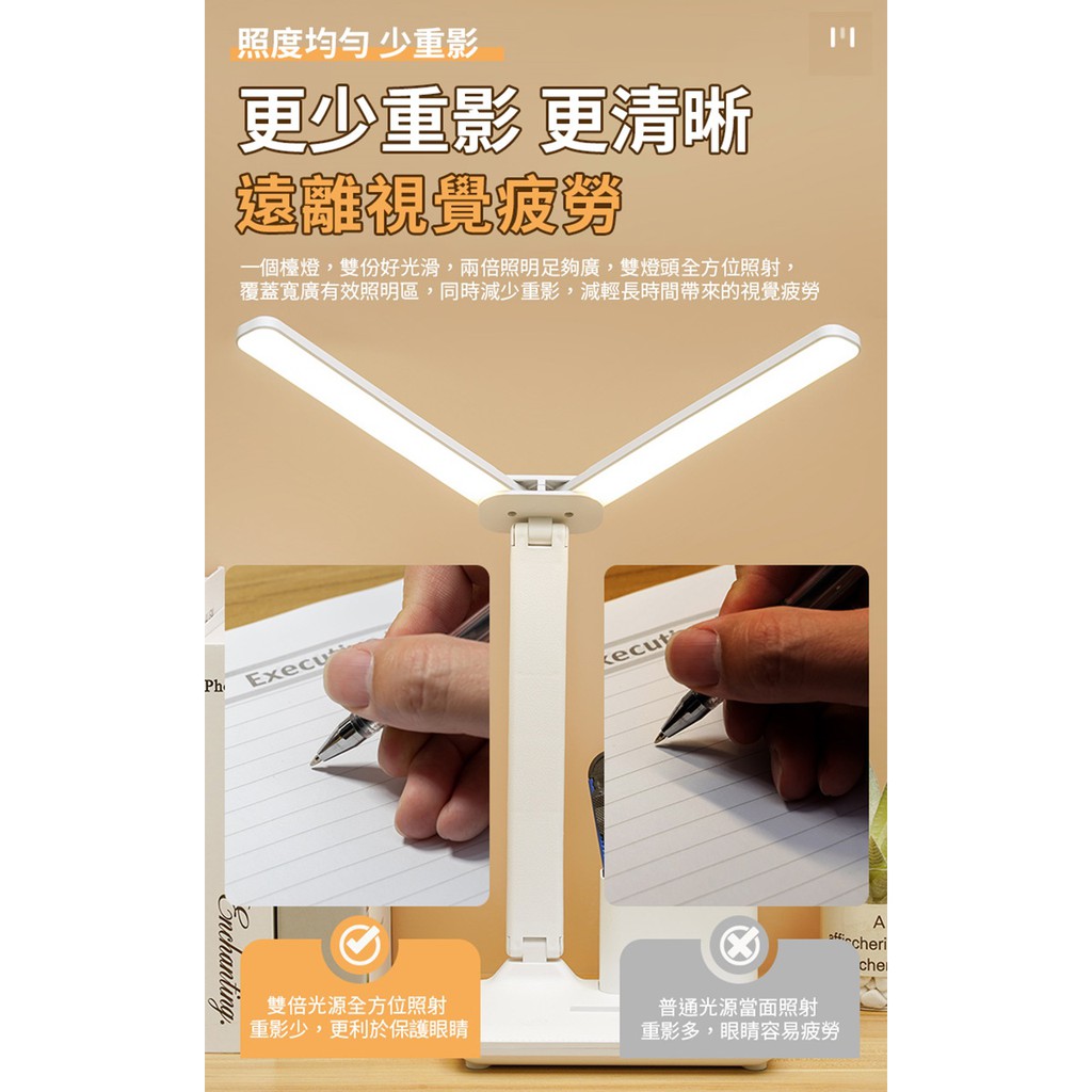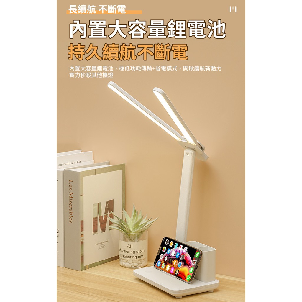 USB雙頭折疊筆筒護眼檯燈摺疊檯燈LED學習燈護眼閱讀燈小夜燈照明燈具帶筆筒可做手機支架LB3203-1 現貨 廠商直送