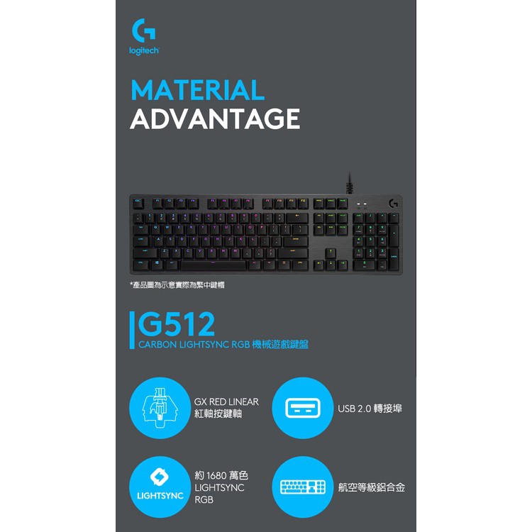 Logitech 羅技 G512 RGB 機械遊戲鍵盤 GX線性紅軸 現貨 廠商直送