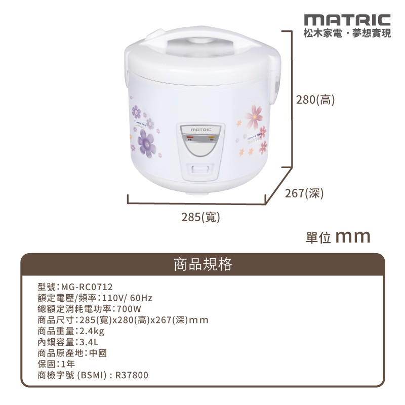 MATRIC 松木 10人份電子鍋MG-RC0712 (大金水性不沾塗層)