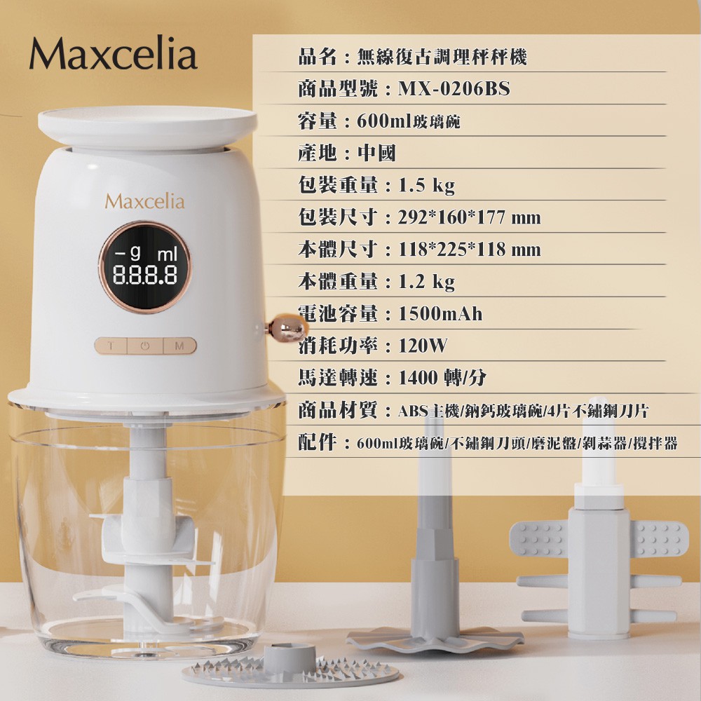日本Maxcelia瑪莎利亞無線復古調理秤秤機MX-0206BS精裝版 現貨 廠商直送