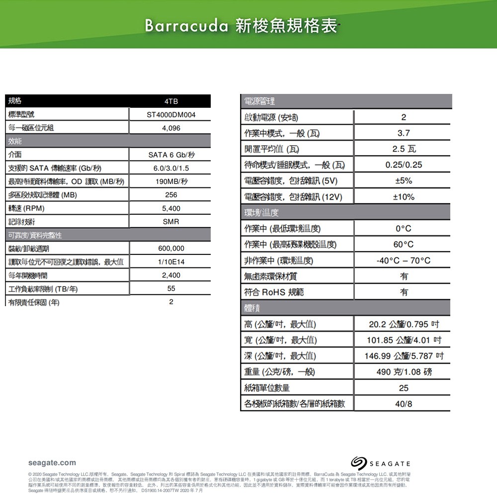 Seagate BarraCuda 4TB 3.5吋桌上型硬碟 (ST4000DM004) 現貨 廠商直送