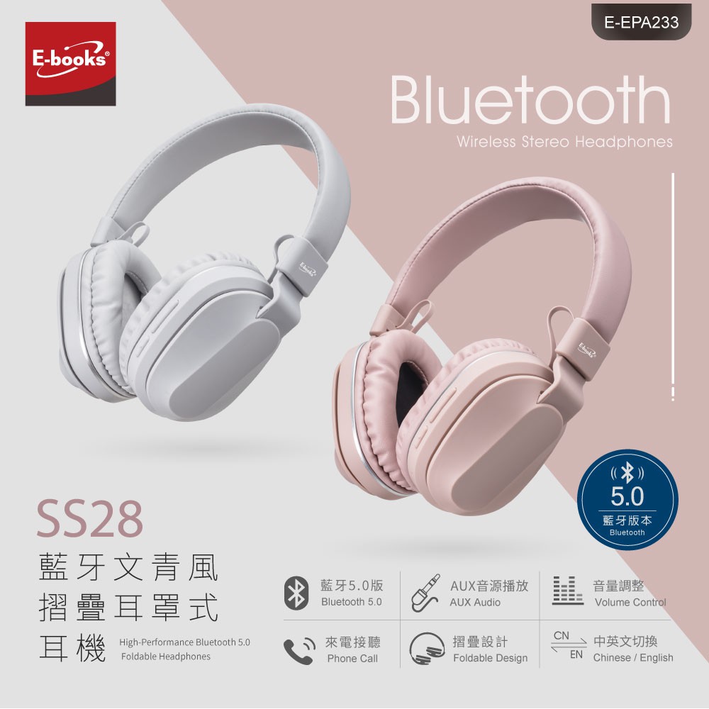 E-books SS28 藍牙文青風摺疊耳罩式耳機 現貨 廠商直送