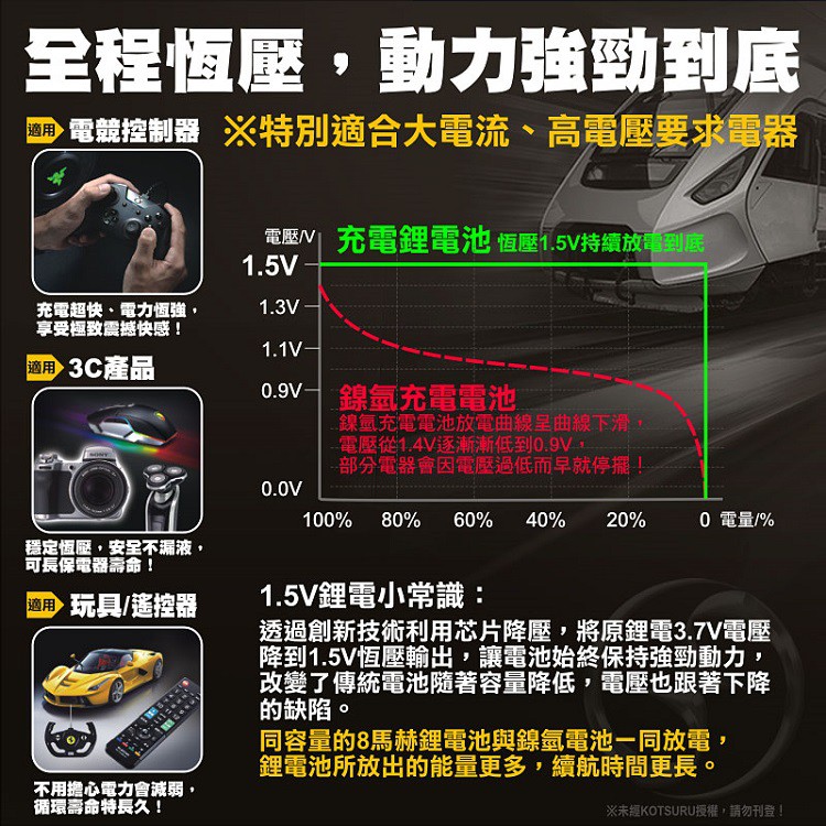 【日本KOTSURU】8馬赫3號/AA恆壓可充式1.5V鋰電池 現貨 廠商直送