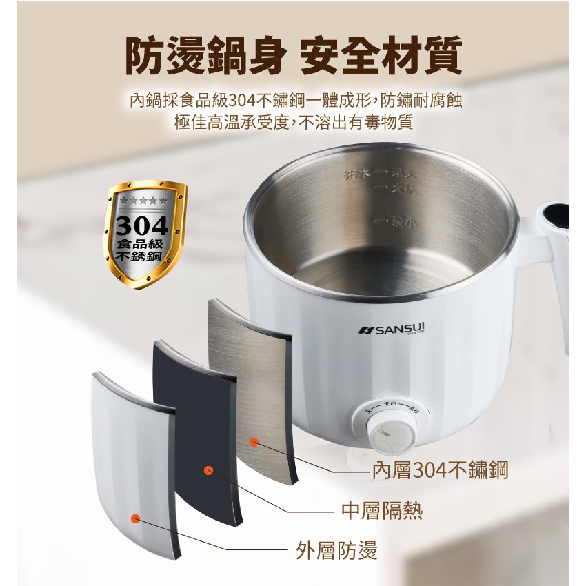 SANSUI山水 多功能不鏽鋼防燙蒸煮美食鍋 附蒸蛋架、蒸籠 快煮鍋/料理鍋/電火鍋/電煮鍋 廠商直送