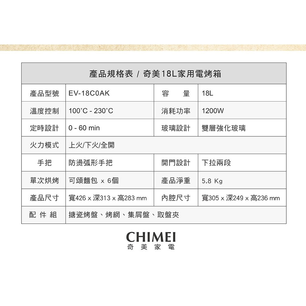 CHIMEI奇美 18L家用電烤箱 (EV-18C0AK) 現貨 廠商直送