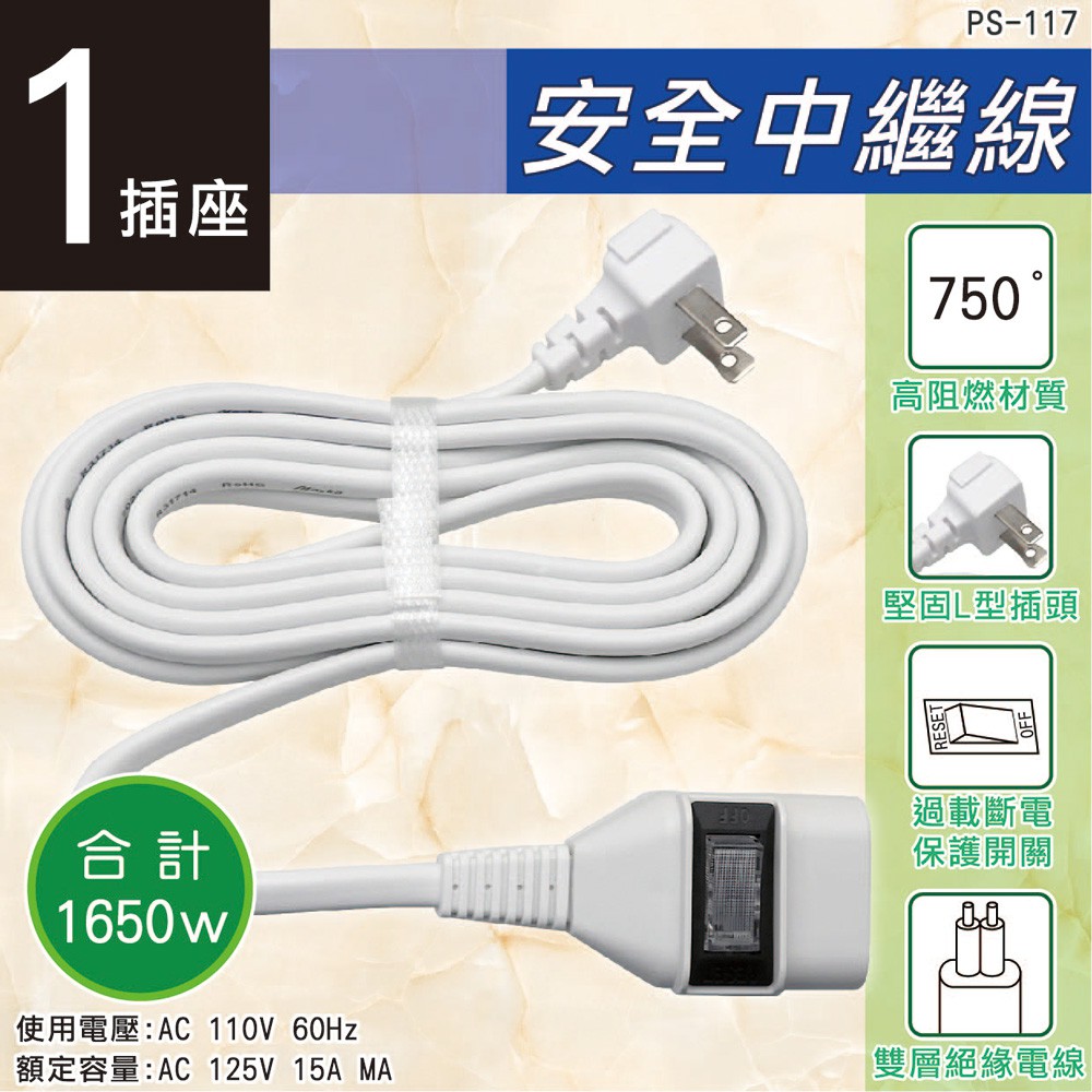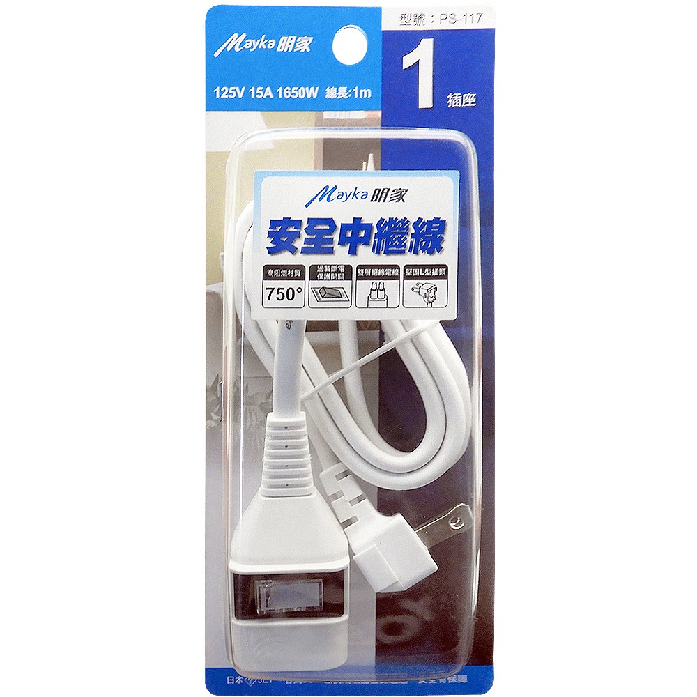 明家Mayka PS-117 2孔1開1插 中繼線(180度 平貼插頭 延長線 過載斷電 L型插頭) 現貨 廠商直送