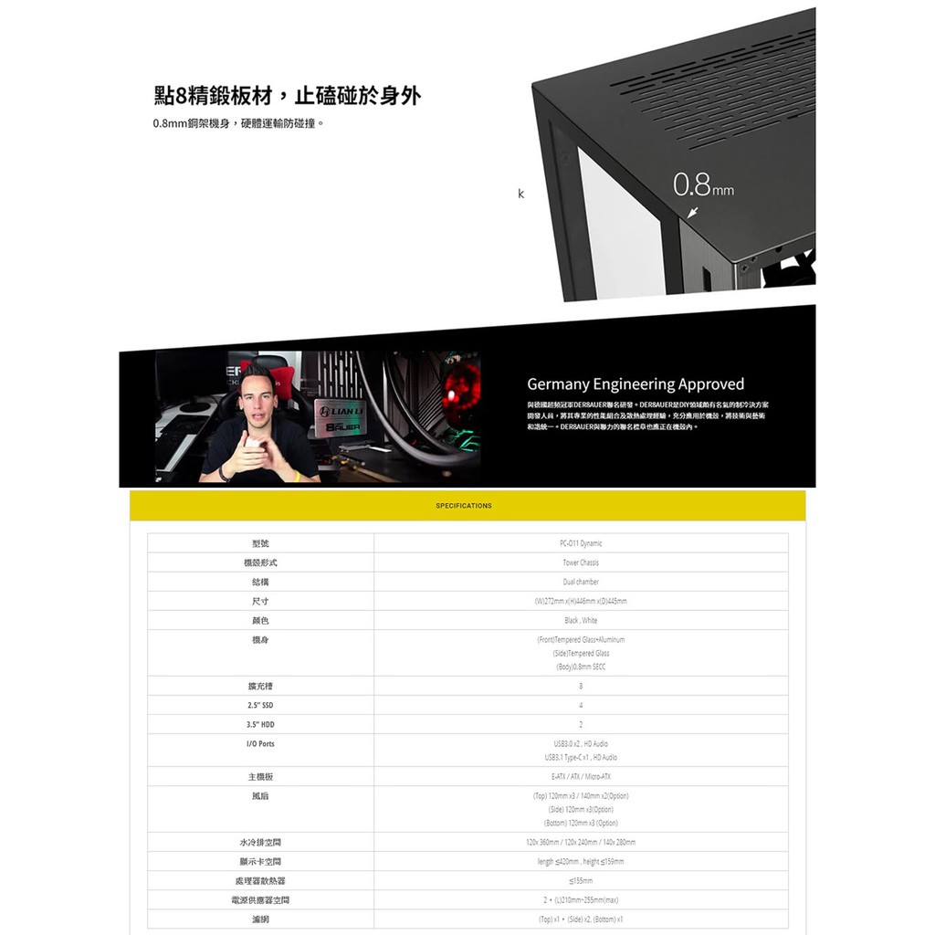LIAN LI 聯力 O11 Dynamic ATX系列 電腦機殼_W/B 現貨 廠商直送