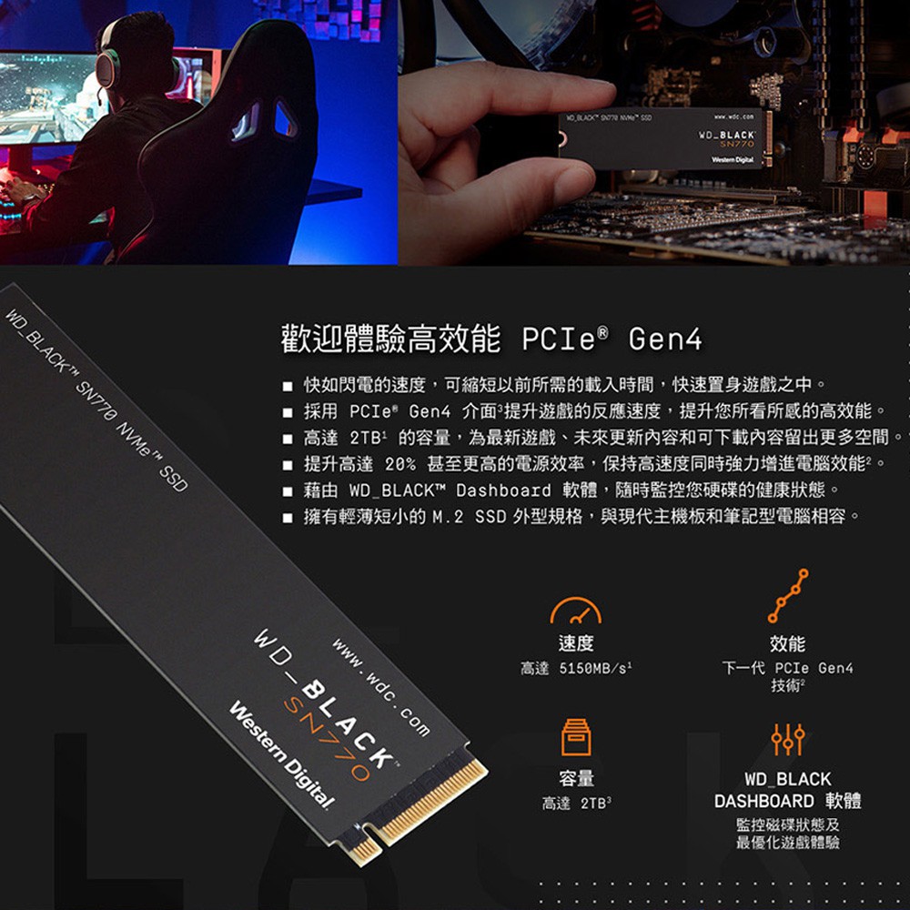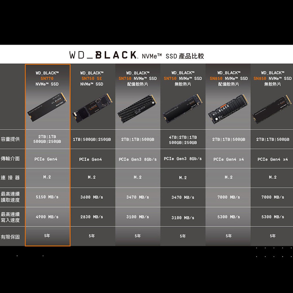 WD 黑標 SN770 1TB NVMe M.2 PCIe SSD 現貨 廠商直送