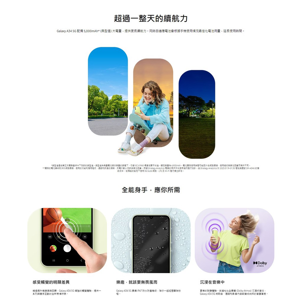 SAMSUNG Galaxy A34 (6G/128G) 6.6吋 5G【贈支架式行動電源】廠商直送