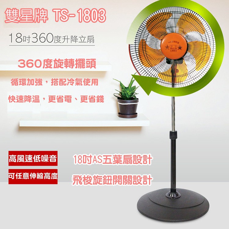 雙星 18吋 (一/兩入組)360度循環涼風扇 電風扇 立扇 TS-1803 現貨 廠商直送