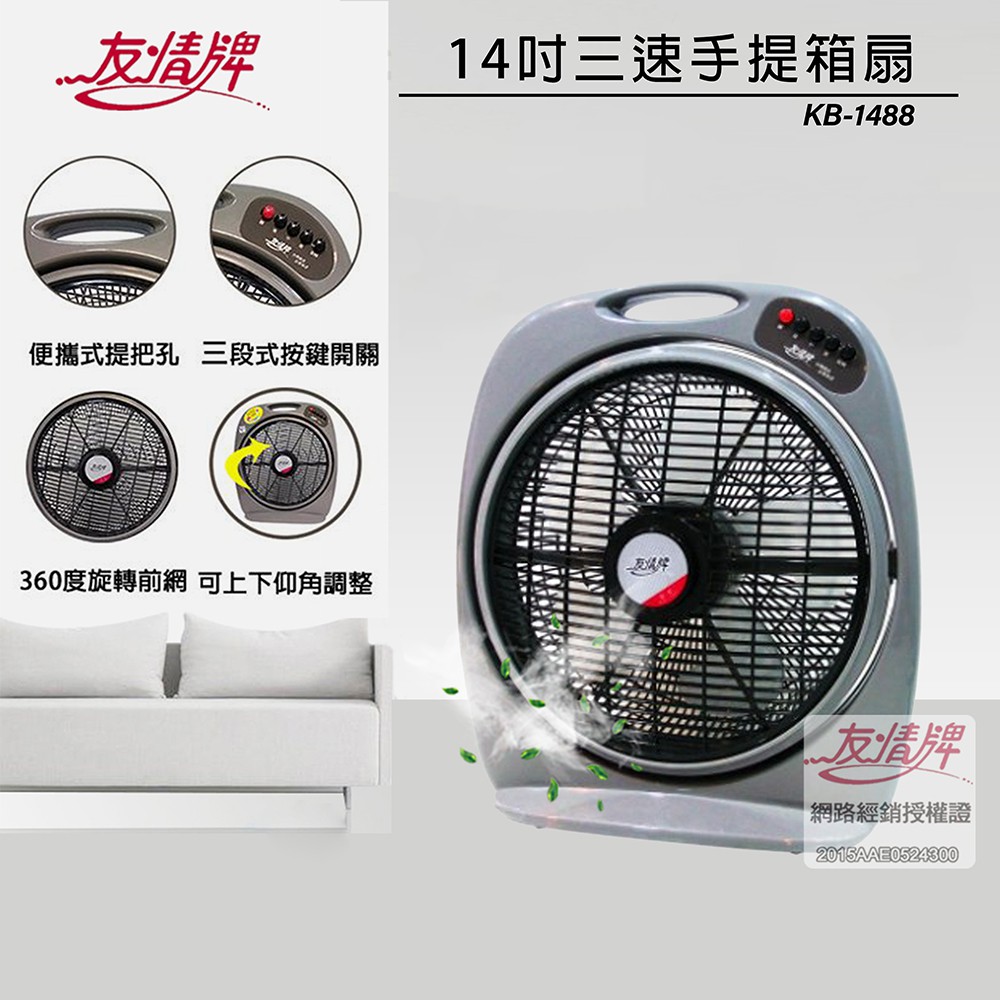 友情 14吋 (一/兩入組)手提箱扇 電風扇 KB-1488 現貨 廠商直送