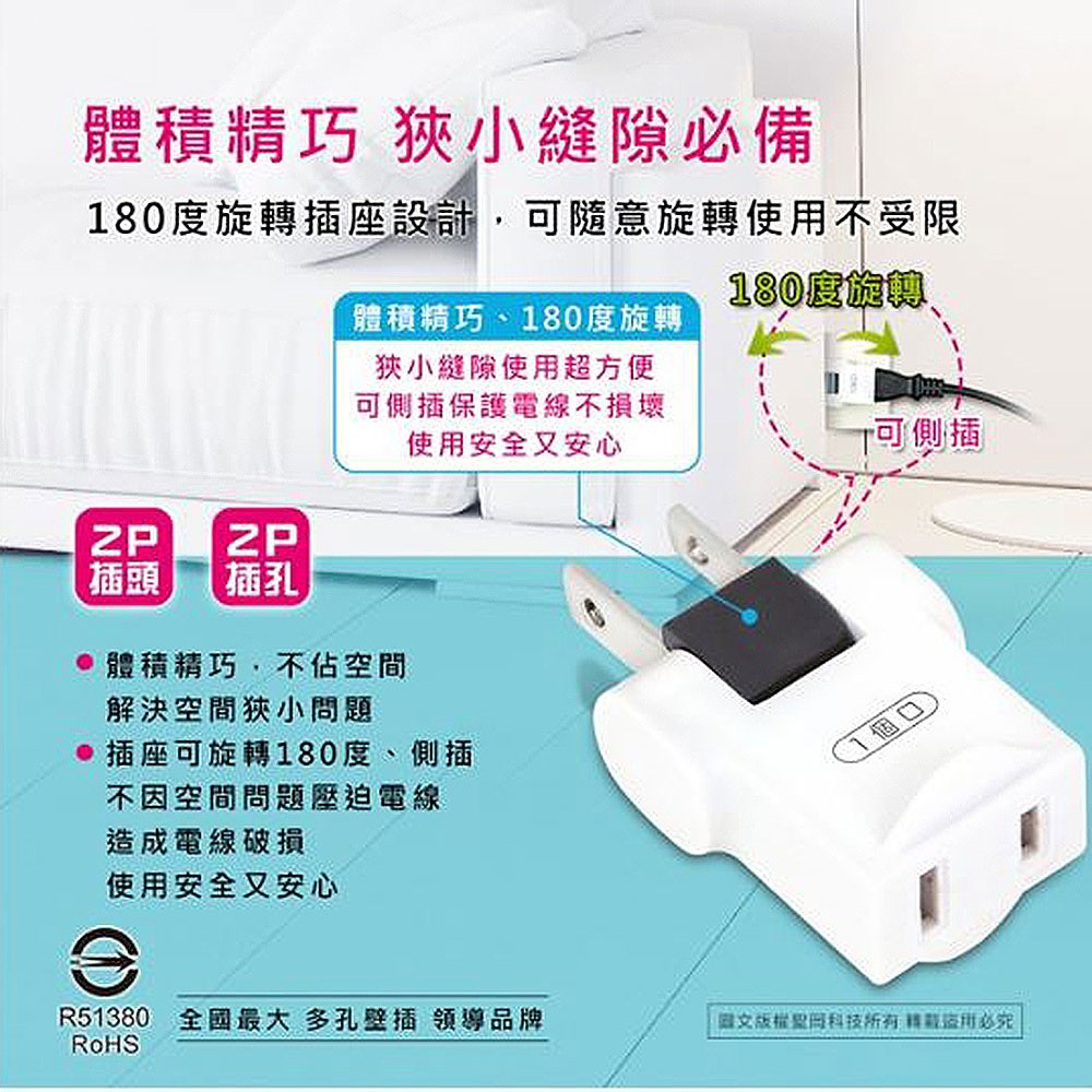 聖岡科技Dr.AVTNT-8352R(A)2入組任意轉2孔180度分接器插座新安規防火壁插轉接插頭轉換 現貨 廠商直送