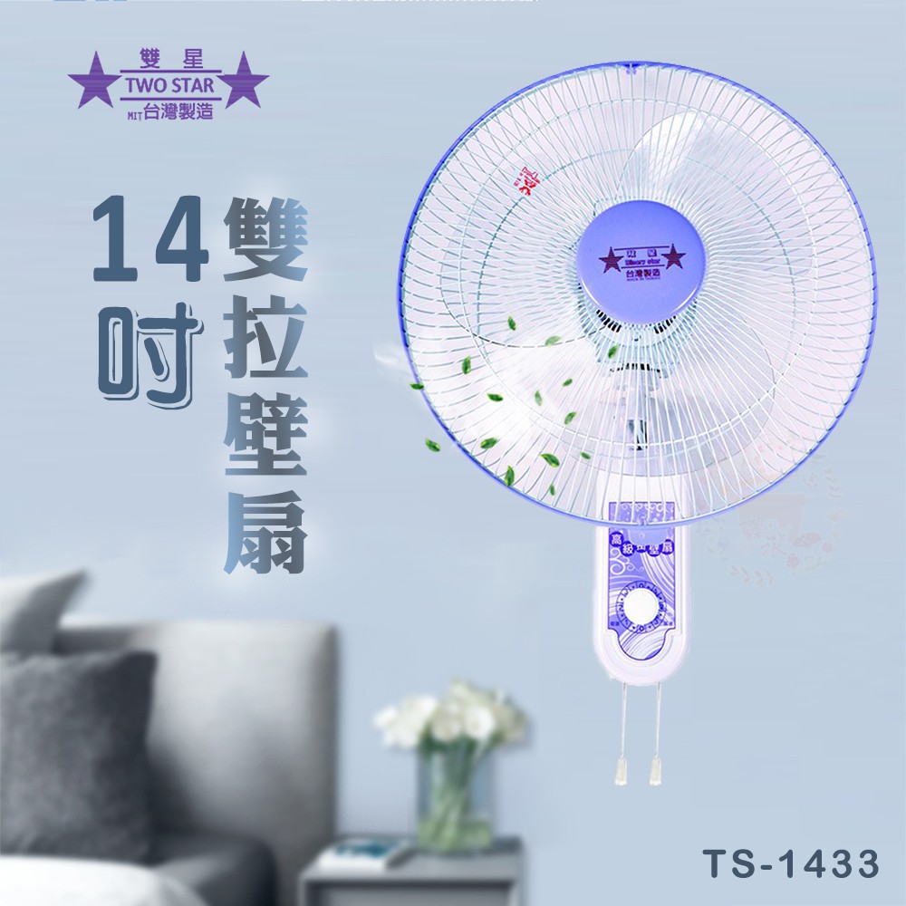 雙星 14吋 (一/兩入組)雙拉壁扇 壁掛扇 電風扇 TS-1433 現貨 廠商直送