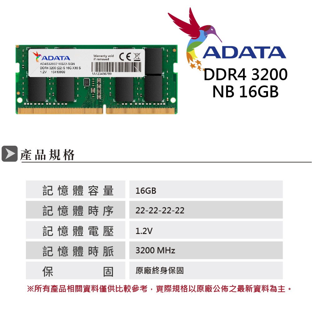 ADATA 威剛 DDR4 3200 32GB 筆記型記憶體 現貨 廠商直送