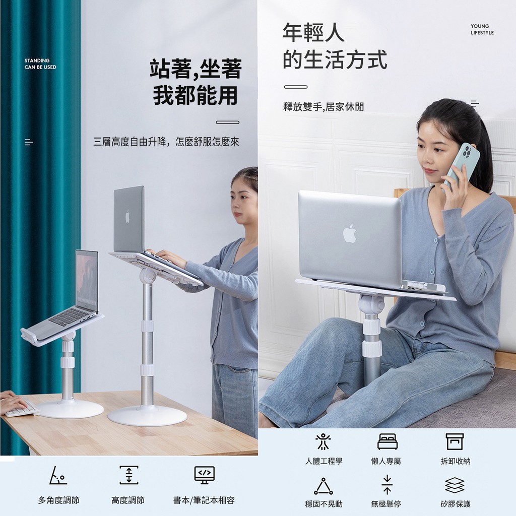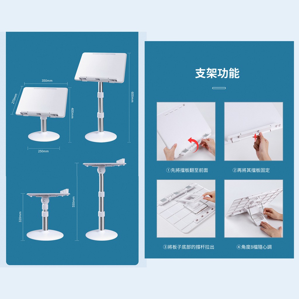 ANTIAN 人體工學可升降落地閱讀支架 便攜式書桌 膝上桌 讀書架 閱讀學習架 筆電支架 床上桌 現貨 蝦皮直送