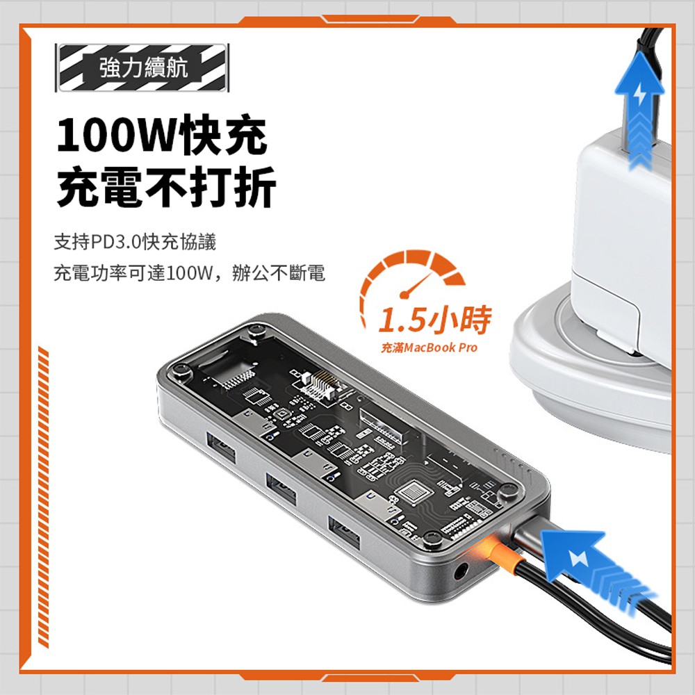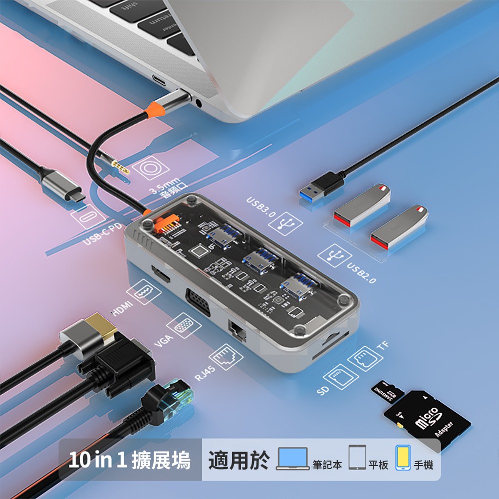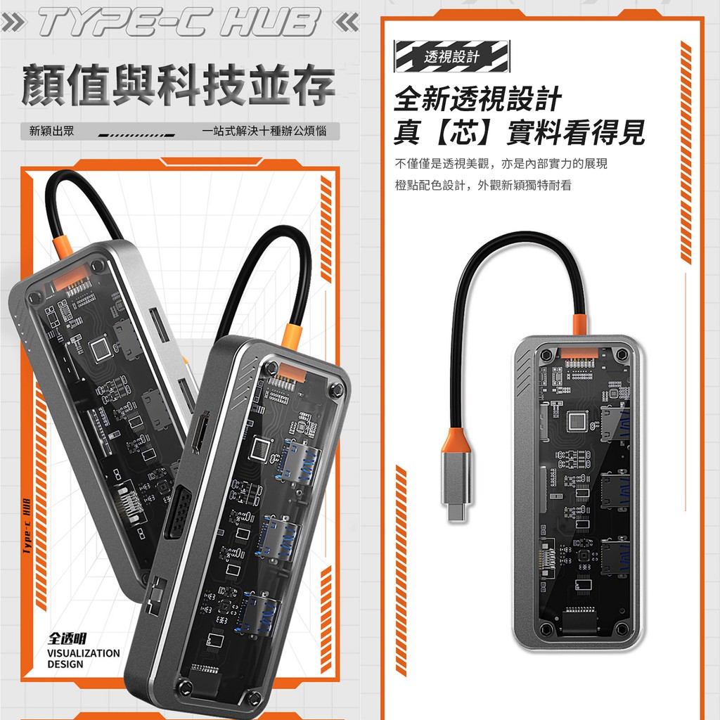 ANTIAN 10合1 Type-C多功能HUB透明轉接器 100W PD快充 VGA HDMI轉接線 現貨 蝦皮直送