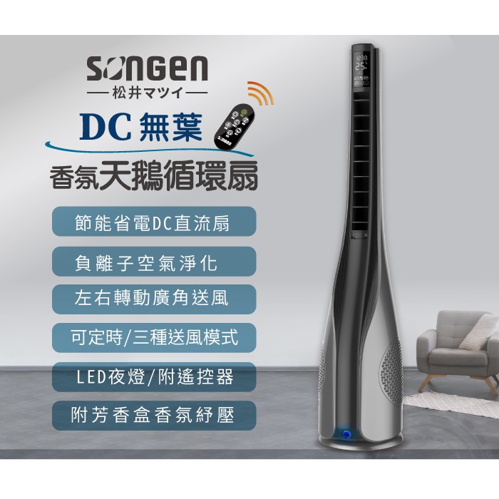 SONGEN松井 DC無葉香氛天鵝循環風扇/涼風扇/清淨機/空調扇(SG-1722TF) 現貨 廠商直送