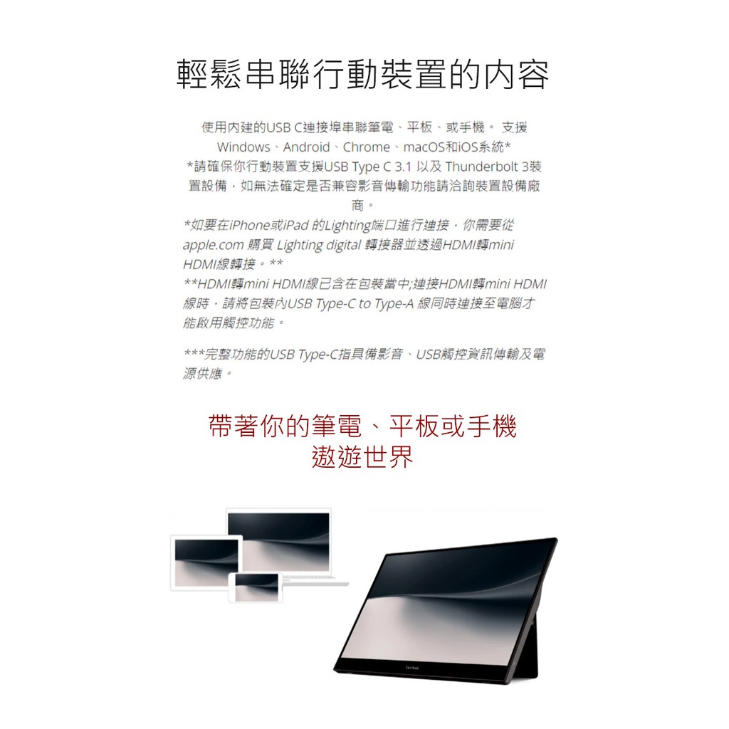 ViewSonic 優派 TD1655 16型 IPS可攜式觸控顯示器 現貨 廠商直送