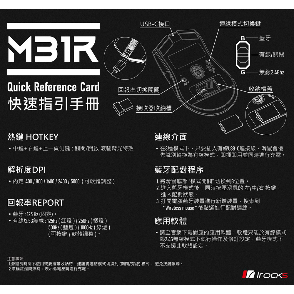 irocks M31R 藍牙 無線 三模 光學 輕量化 電競滑鼠學 遊戲滑鼠 現貨 廠商直送