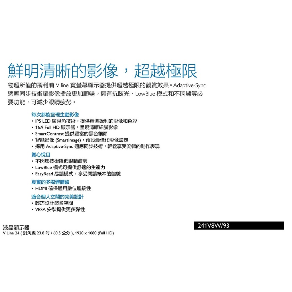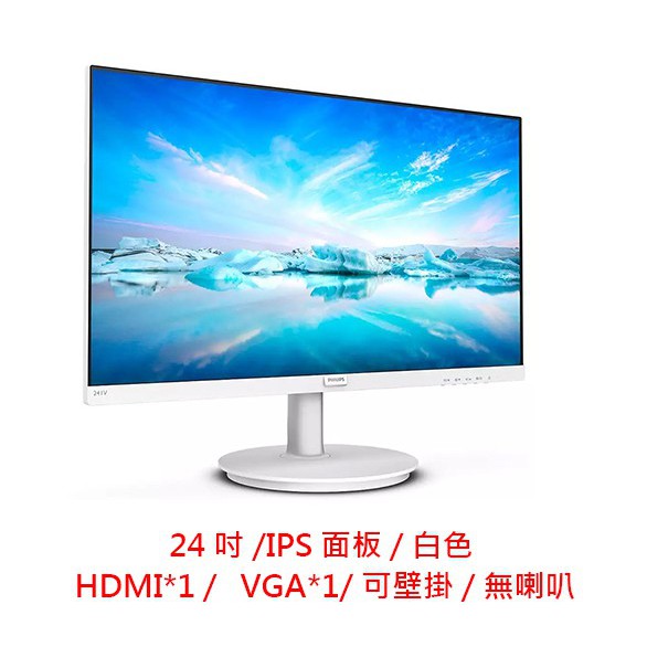 PHILIPS 飛利浦 241V8W 白色 24型 IPS寬螢幕 可壁掛 電腦螢幕 液晶螢幕 現貨 廠商直送