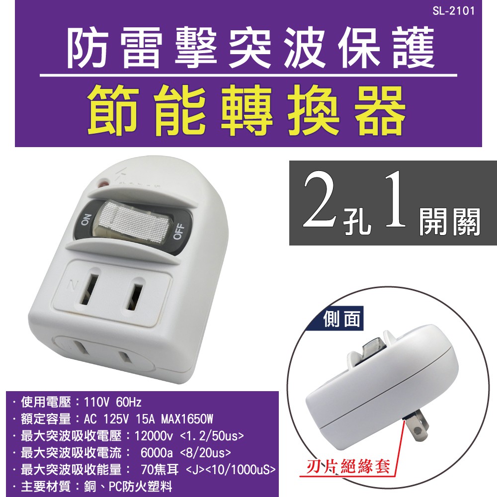 明家Mayka SL-2101防雷擊 分接器2孔1開2插新安規壁插分接器防雷擊突波防雷指示燈防火 現貨 廠商直送