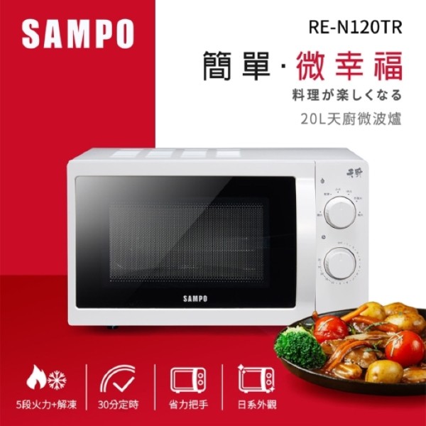 SAMPO 聲寶- 20L轉盤式機械微波爐 RE-N120TR 廠商直送