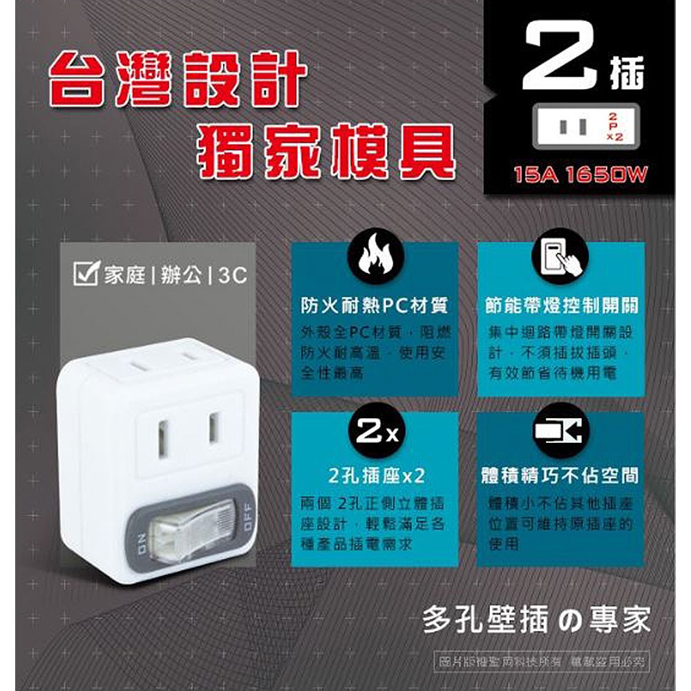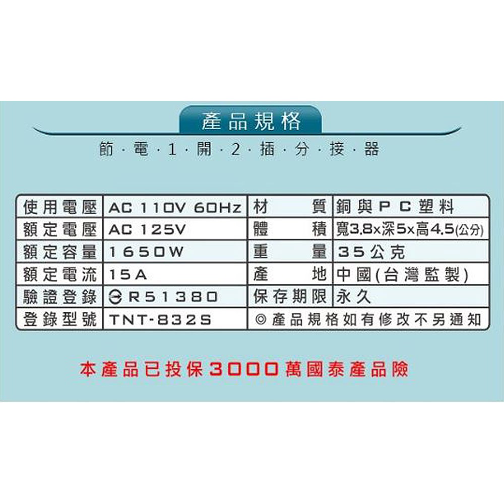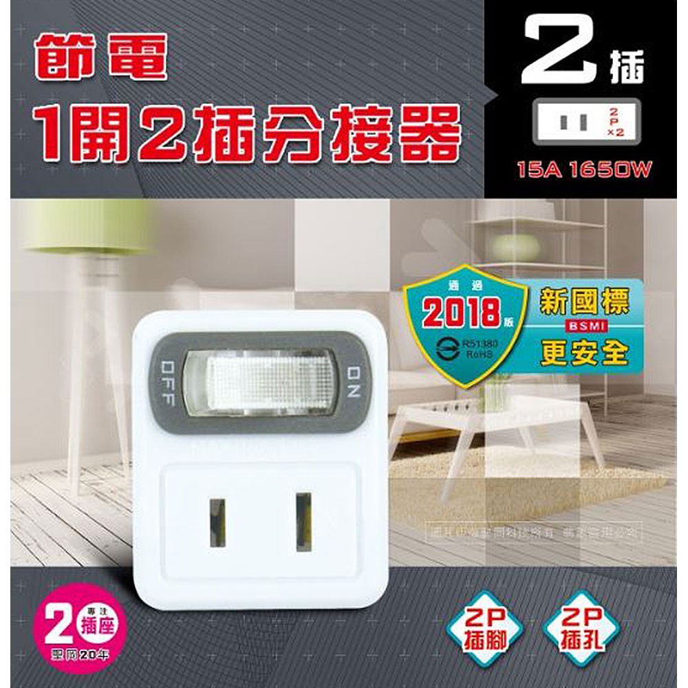 聖岡科技Dr.AV TNT-832S分接器2孔1開2插(節能 帶燈開關 壁插 防火) 現貨 廠商直送