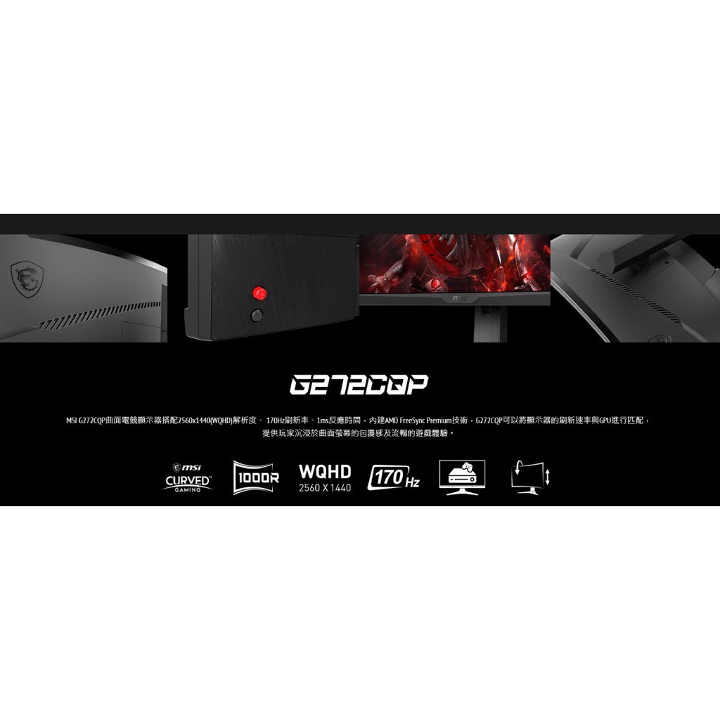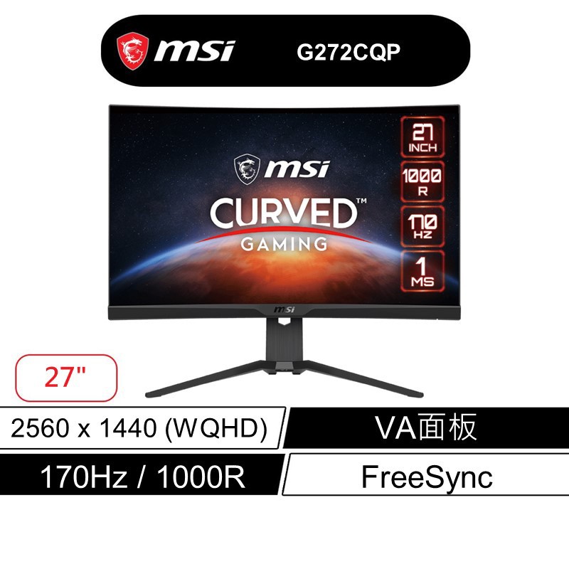 msi 微星 G272CQP 27吋 電競螢幕 曲面螢幕 WQHD/170Hz/1ms 廠商直送