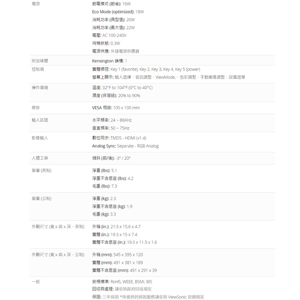 ViewSonic 優派 22型 VA2209-H 螢幕 無邊框 FHD/HDMI/IPS 現貨 廠商直送