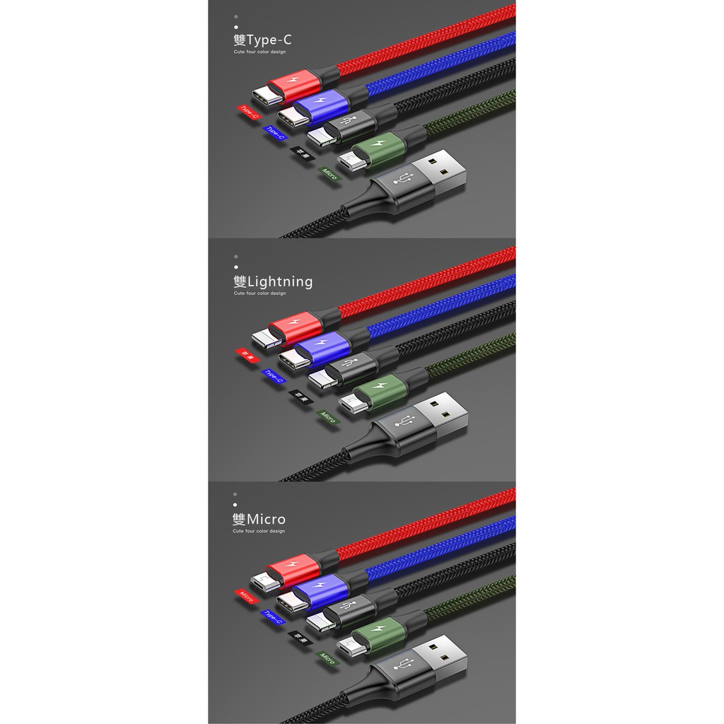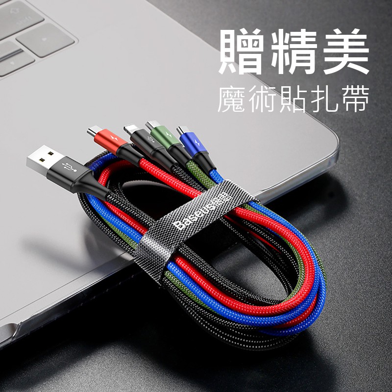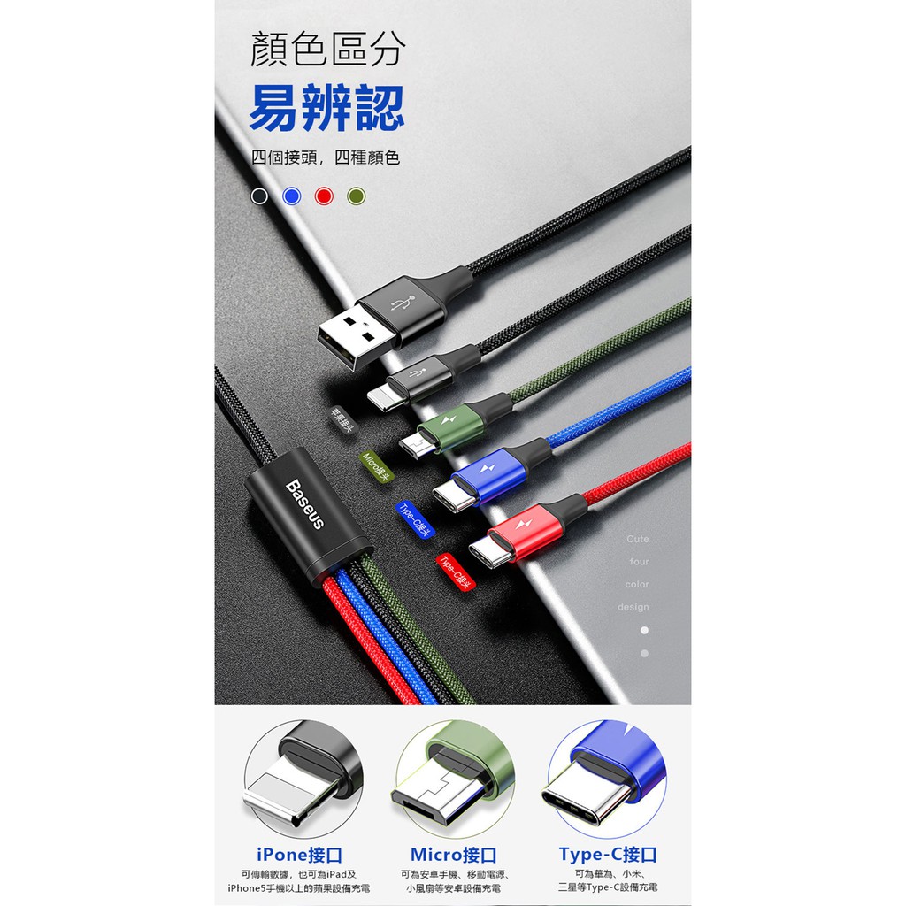Baseus倍思 適用 IPhone Lightning+Micro+Type-C 四合一充電線 尼龍編織 蝦皮直送