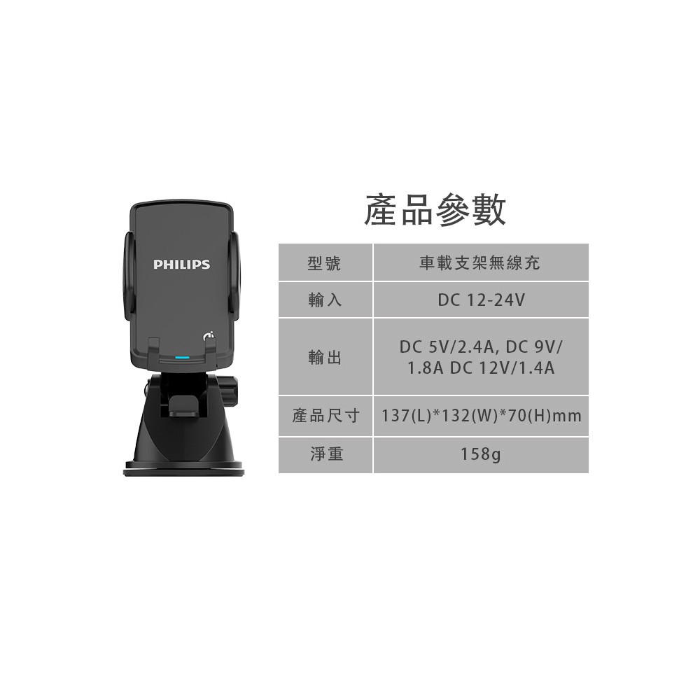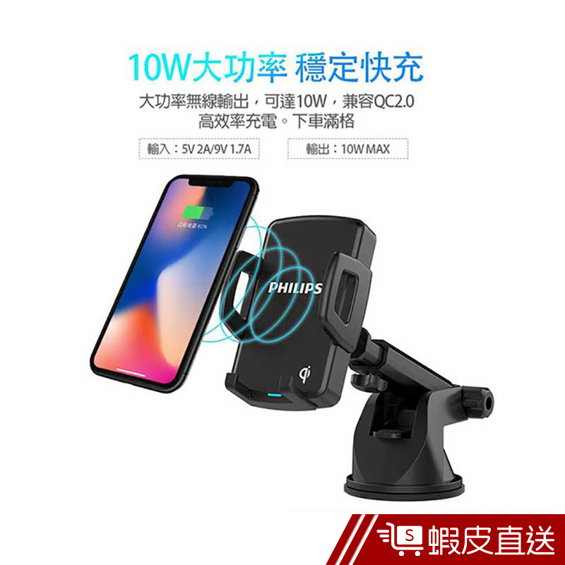 PHILIPS 飛利浦 車用Qi無線充電 兩用 手機支架 附車充 DLP9365 現貨 蝦皮直送