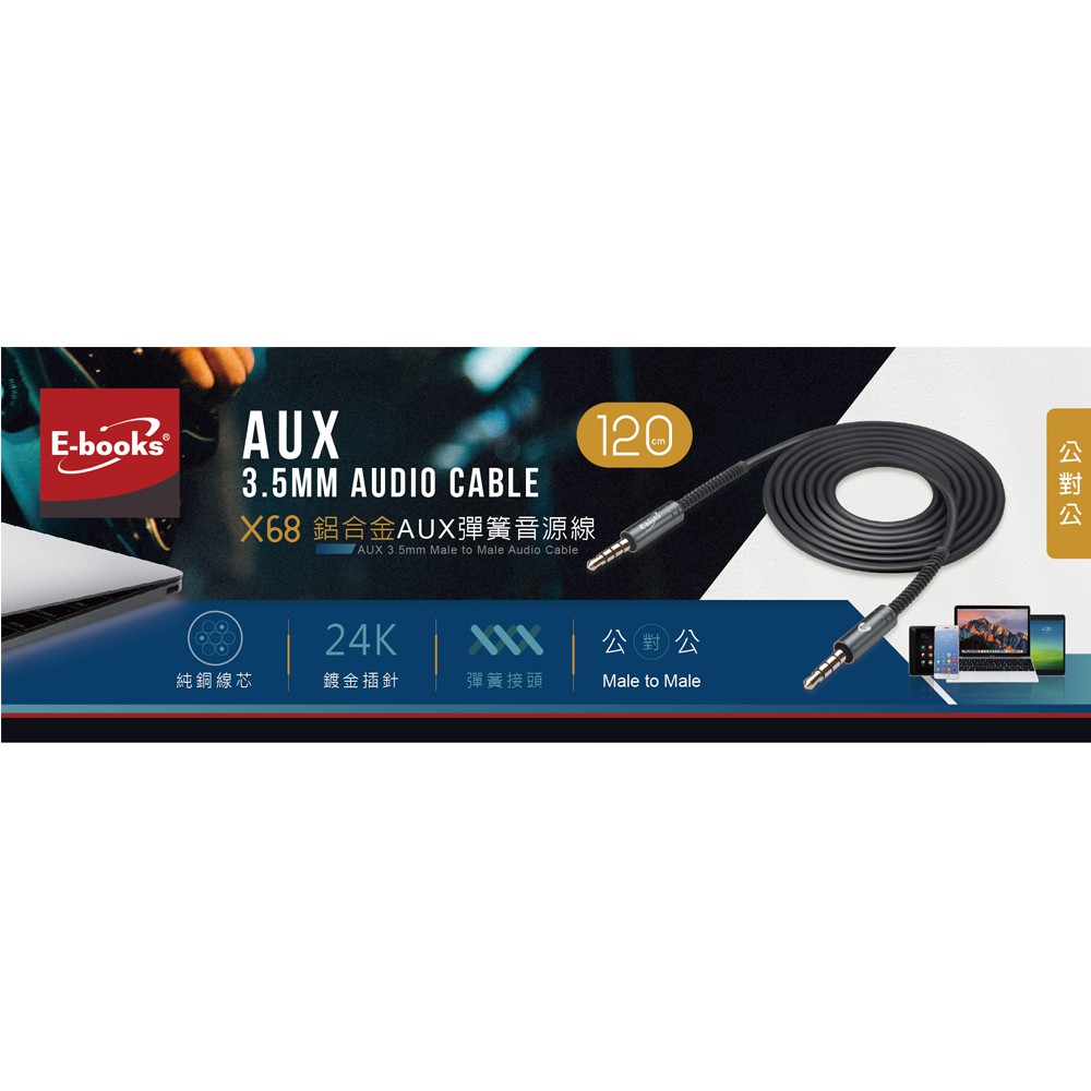 E-books 鋁合金AUX彈簧音源線公對公3.5mm-120cm -- X68 蝦皮直送 現貨