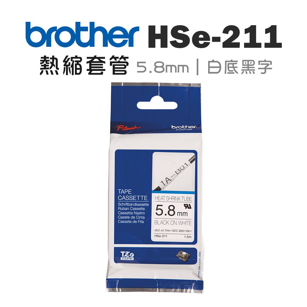 Brother HSe-211 熱縮套管標籤帶 (5.8mm 白底黑字) 廠商直送